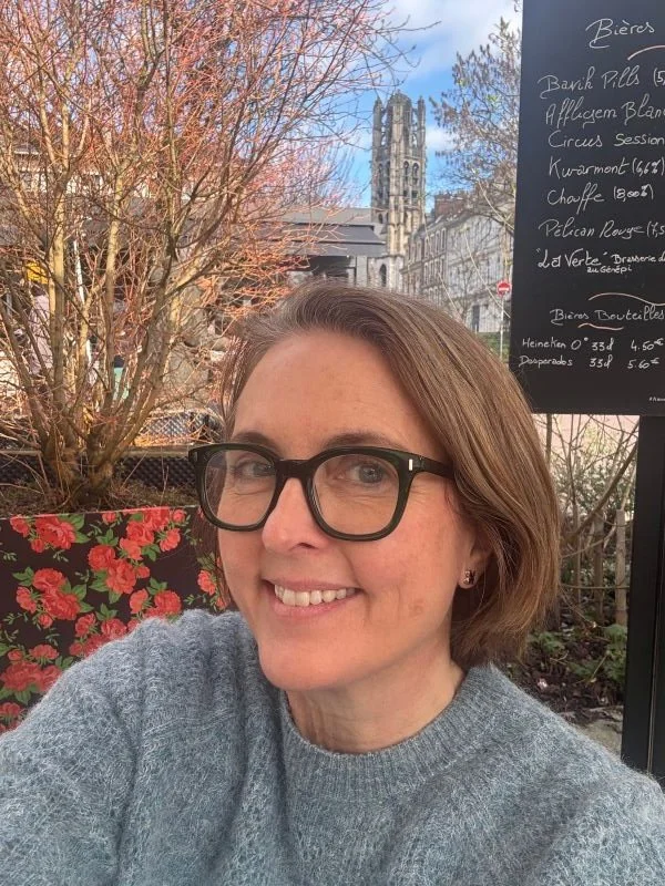 On Saturday I took a spur-of-the-moment day trip to the gorgeous medieval town of Rouen, in Normandy. The picture is me, sitting outside in just a jumper - no coat! - which felt like a small but definite and very welcome shift. The air is milder, people are lingering a bit longer at café tables, and the light is stretching into the evening.